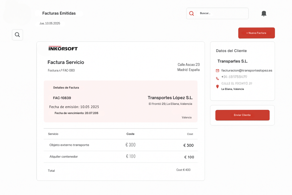 Transforma la gestión de tus facturas con una solución a medida que se adapta a las necesidades específicas de tu empresa de transporte y logística.