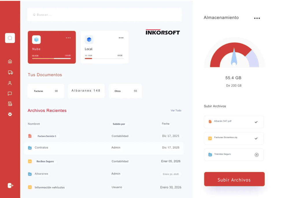 Centraliza toda tu documentación en una única plataforma inteligente, totalmente adaptada a tu operativa. Desde facturas, albaranes y seguros, hasta contratos y certificados clave, todo queda digitalizado, ordenado y siempre accesible para quien lo necesita..